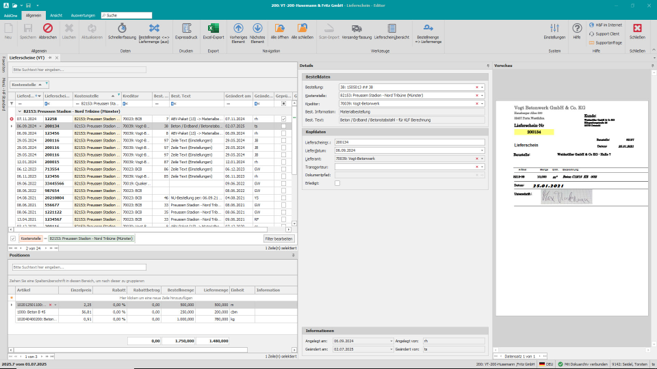 Ja. Lieferscheine können erfasst und mit Rechnungen oder Bestellungen verknüpft werden. So lassen sich Mengenabweichungen oder Differenzen frühzeitig erkennen und dokumentieren.