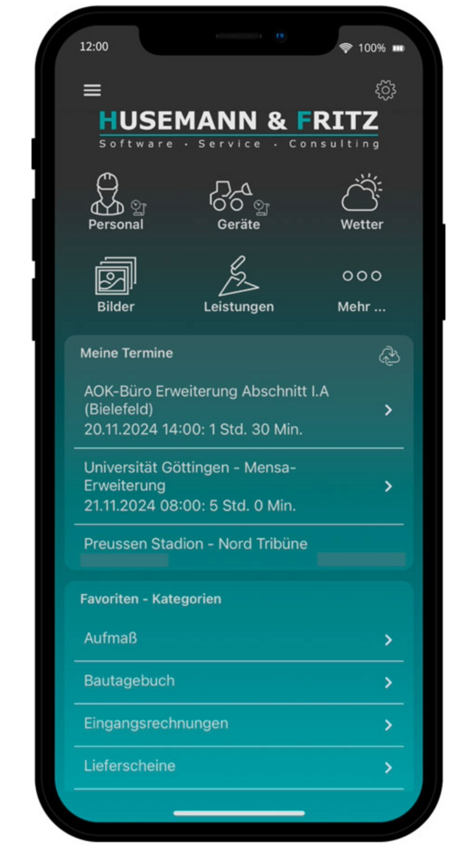 - Reibungslose Zusammenarbeit: Bauleitung, Büro und Kolonnen arbeiten nahtlos miteinander – digital vernetzt.